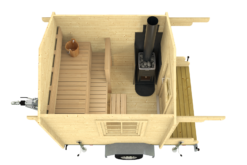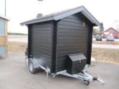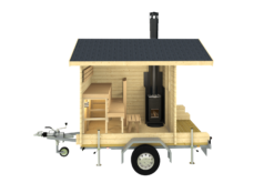 Kärrysaunat on valmistettu korkealaatuisesta kuusipuusta, ja pakettiin kuuluvat leppälauteet, puukiuas ja Suomessa valmistettu korkealaatuinen ja sulkupellillinen savupiippu, jossa on vesisäiliö.