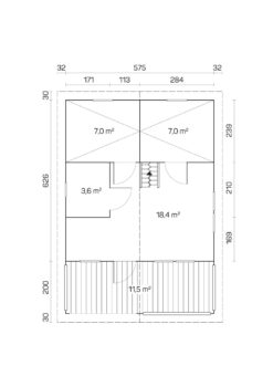 Seinäpaksuudeltaan tuotepiirustuksen mukaisesti 70 mm Pihatuuri-pihamökkipaketti sisältää: