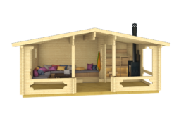 Hintaan ei kuulu: rakennuksen pohjan tarvikkeet, terassin lattian sekä terassin kaiteiden asennus (terassin tarvikkeet ovat mukana, osina).