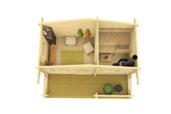Tehtaalla valmiiksi rakennetun pihasaunan toimitussisältöön kuuluu: