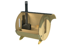Pihatuuri piharakennustehtaalla rakennettu tynnyrisauna Masku on käyttövalmis. Kuljetamme tuotteen kaikkialle, minne pääsee nosturiautolla.