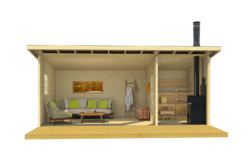 Hintaan sisältyvät leppälauteet, porraspenkki ja selkänoja, 28 mm:n lattia, asennustarvikkeet ja asennusohjeet.