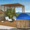 Valettu PE-muovinen sisäpinta on erittäin helppo puhdistaa. Kylpytynnyrissä on viemäri ja hanallinen vedenpoistoputki. Kannellinen kylpytynnyri kestää hyvin sääolosuhteita – ei säikähdä kuumaa eikä kylmää. Kylpytynnyrin kannen ansiosta kylpytynnyrin vesi lämpenee nopeammin, eikä roskia tai likaa pääse kylpytynnyrin veteen, kun kansi on suljettu.