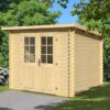 Mallin mukaan 28 mm seinäpaksuinen Pihatuuri puutarhamökkisarja sisältää: