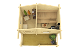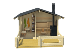 Tehtaalla valmiiksi rakennetun pihasaunan toimitussisältöön kuuluu: