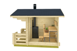 Tehtaalla valmiiksi rakennetun pihasaunan toimitussisältöön kuuluu: