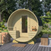 Pihatuuri piharakennustehtaalla rakennettu tynnyrisauna Kemi on käyttövalmis. Kuljetamme tuotteen kaikkialle, minne pääsee nosturiautolla.